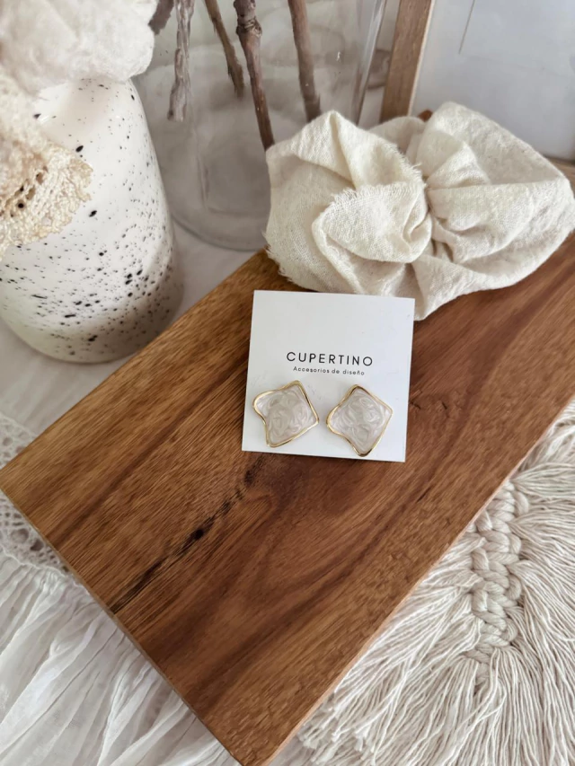 Aros de diseño esmaltados con pasante y perno de acero dorado.