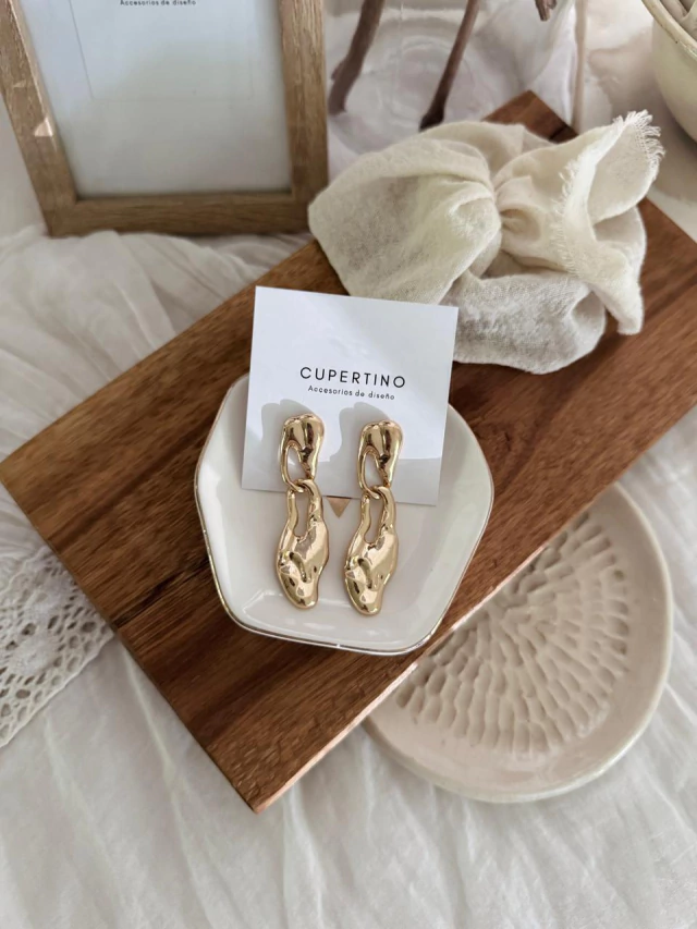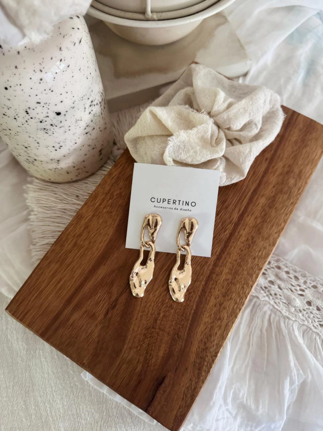 Aros de diseño de forma irregular y original, livianos y cómodos. 6 cm. de largo.