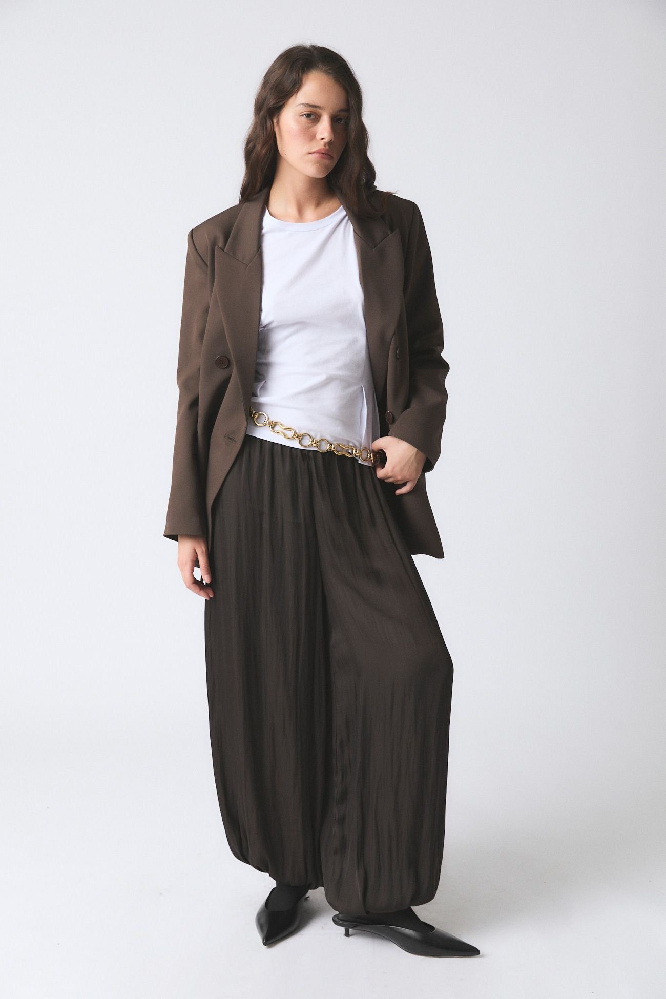 Babucha de sedita con calce súper holgado. Con cintura elástica y lazos en los tobillos