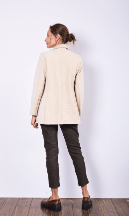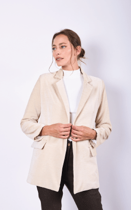 Blazer forrado con hombreras, botón de pasta al tono y bolsillos frontales