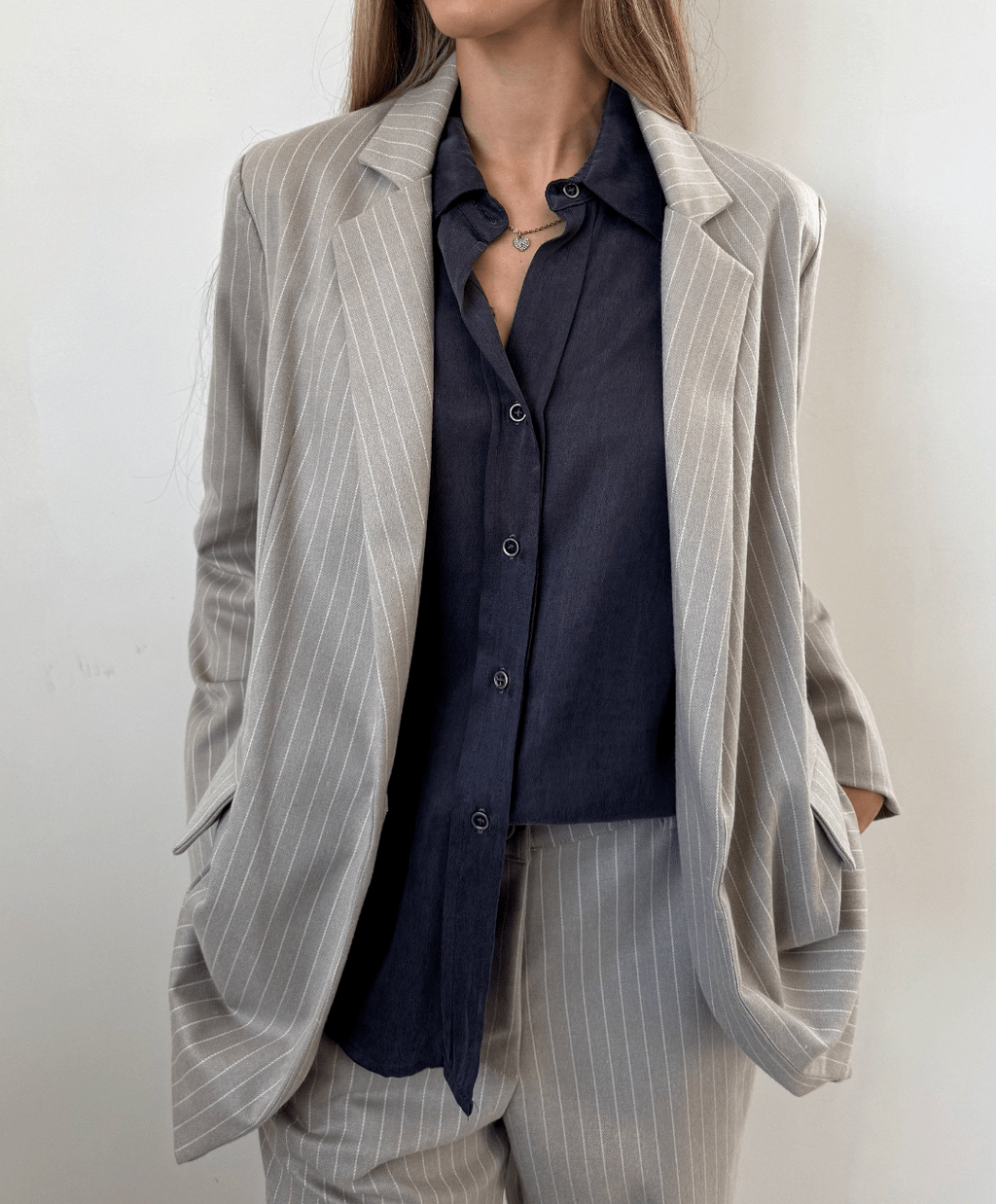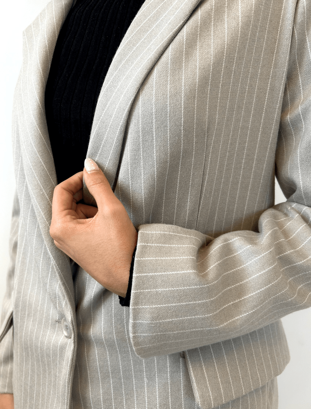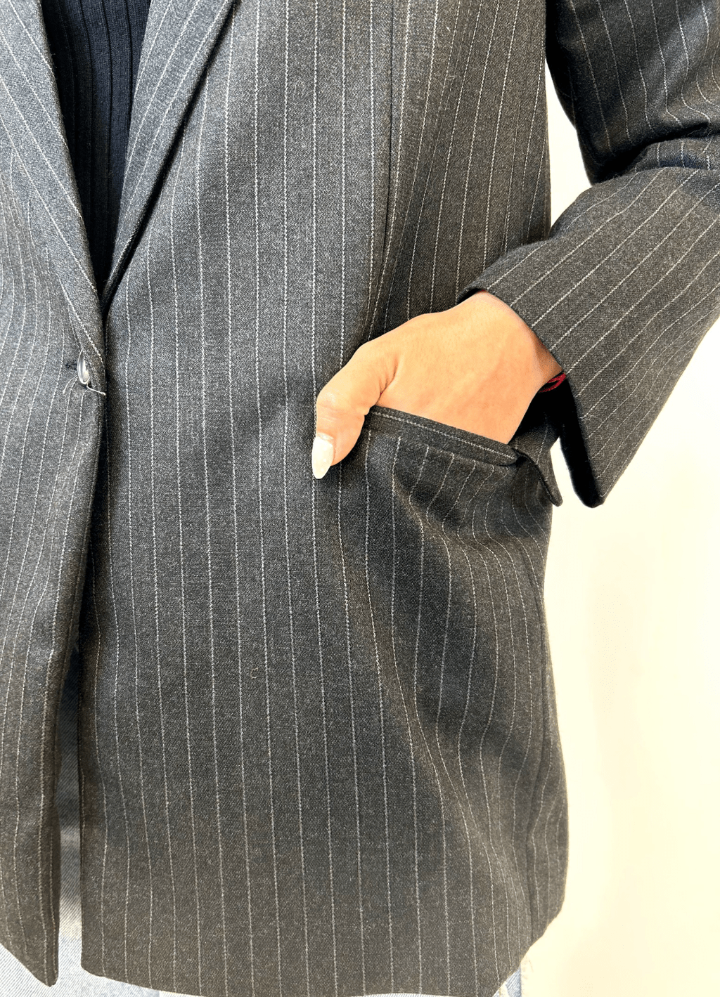 Blazer tizado con bolsillos frontales con tapa y botón de pasta al tono.