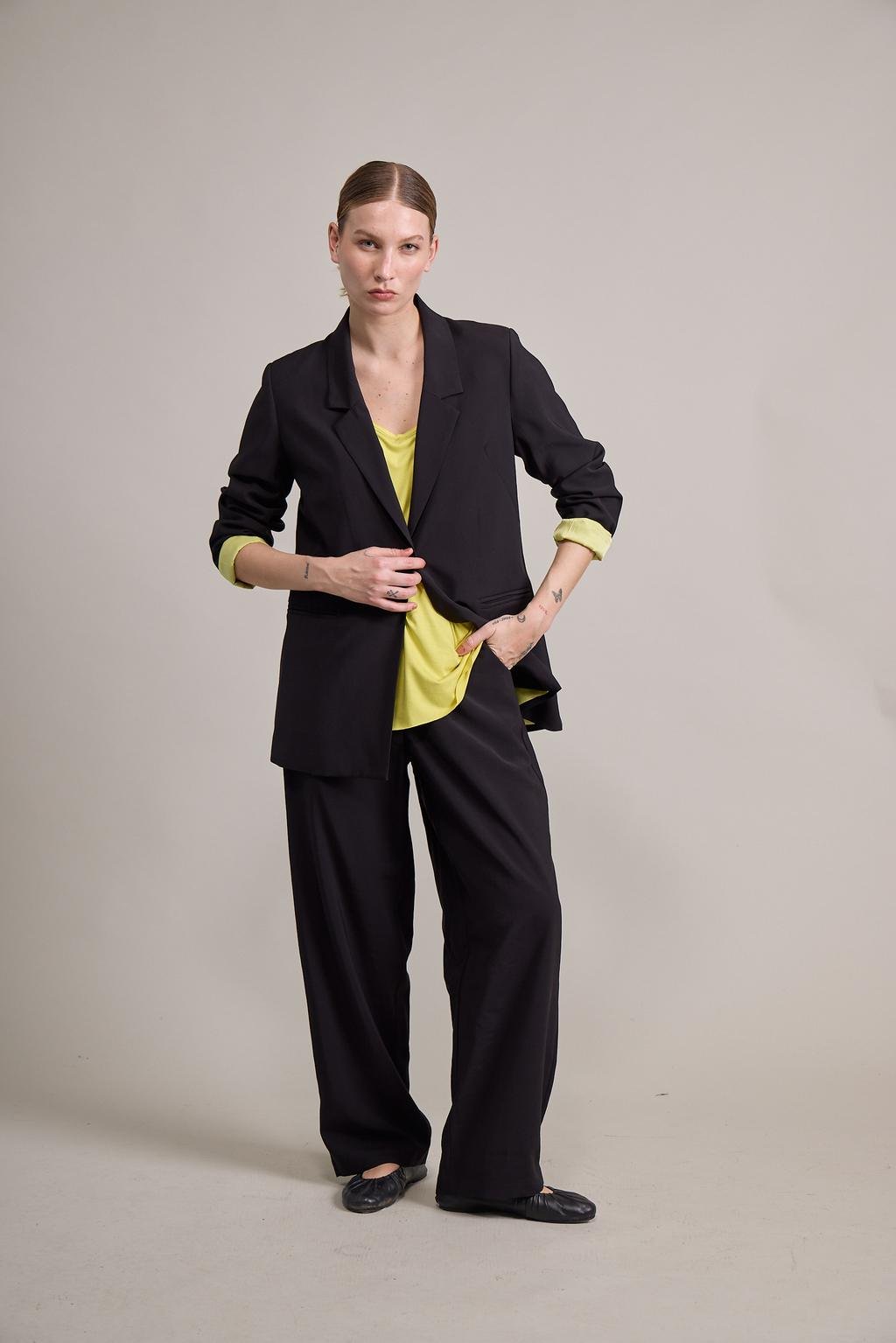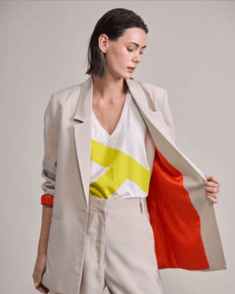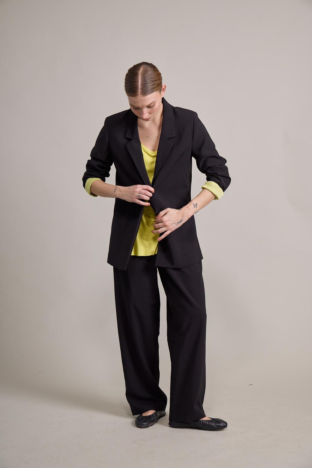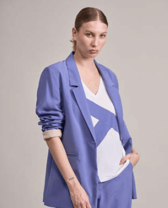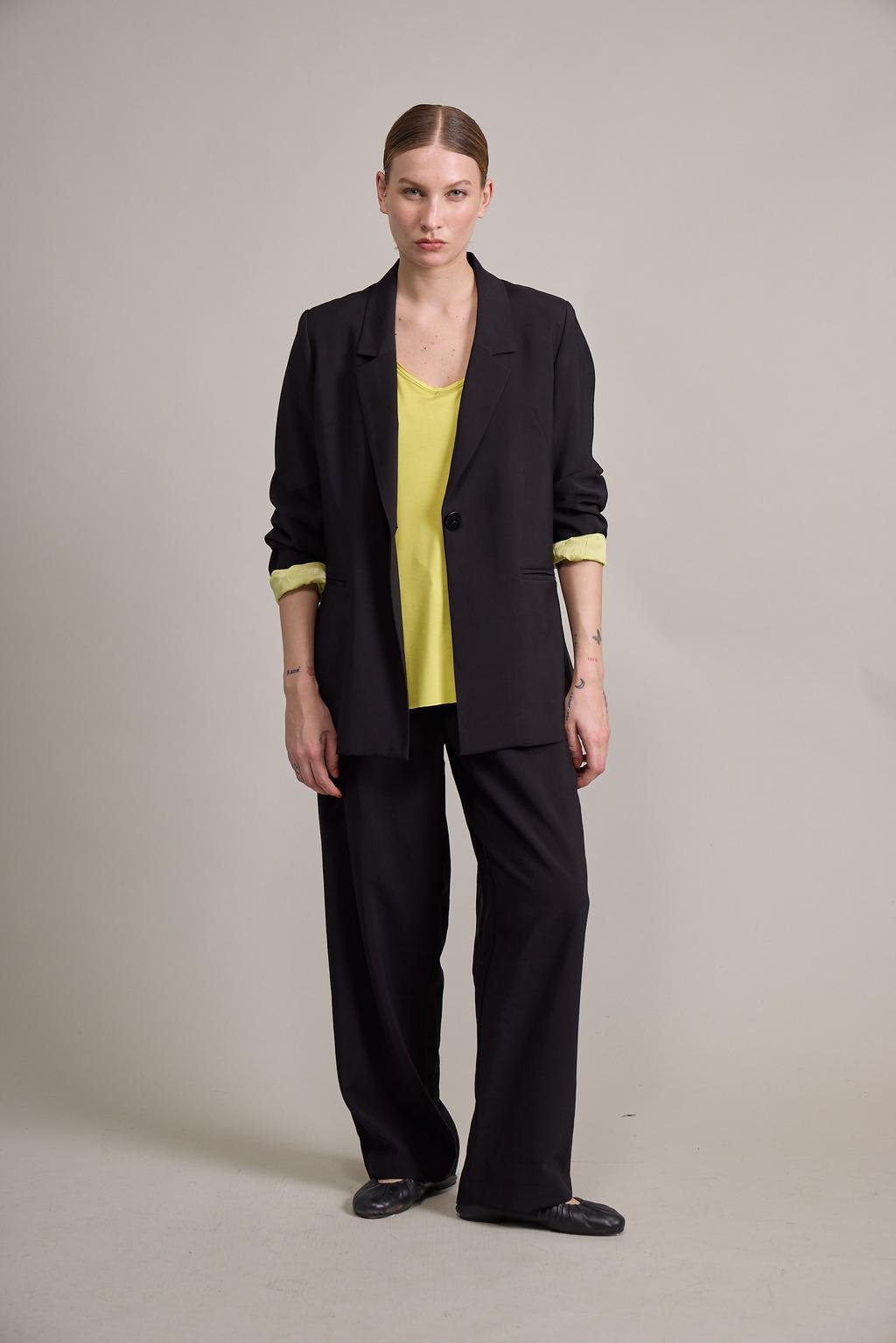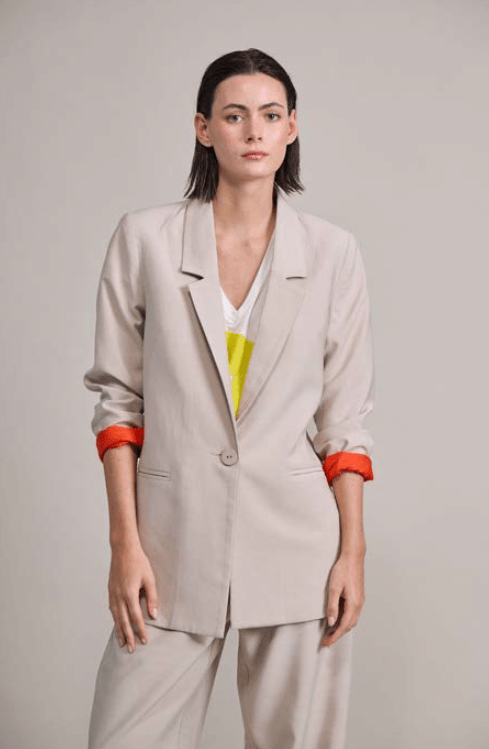 Blazer sastrero de rayón forrado a contratono con bolsillo ojal y botón de pasta al tono