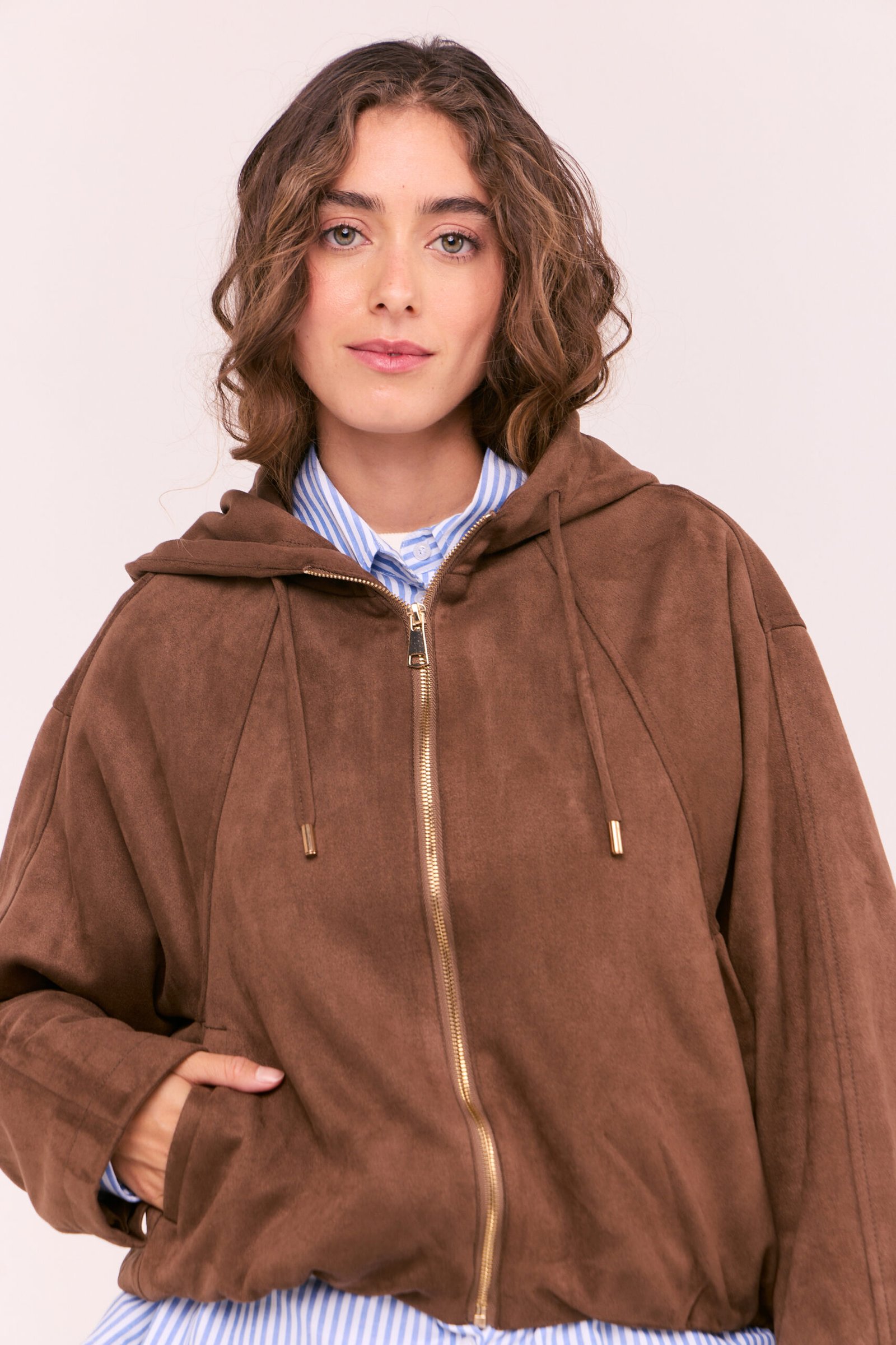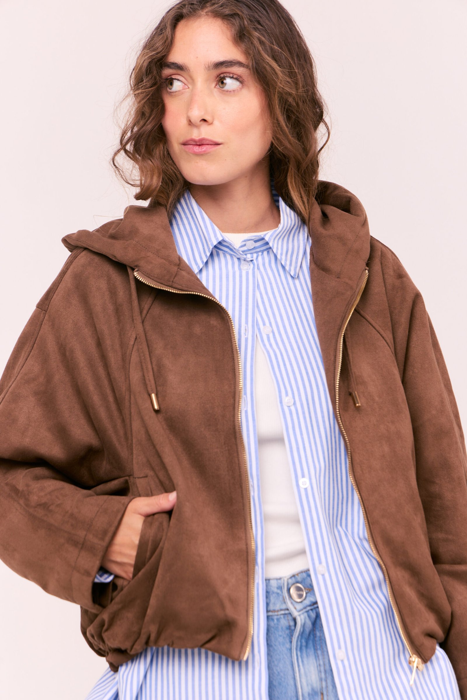 Silueta: Bomber. Diseñado para un calce relajado y cómodo.