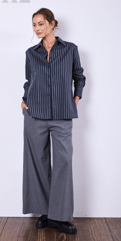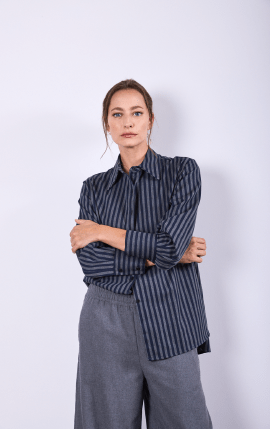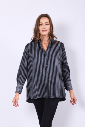 Camisa manga larga con cuello clásico italiano. Tabla en la espalda con botones de pasta negros.