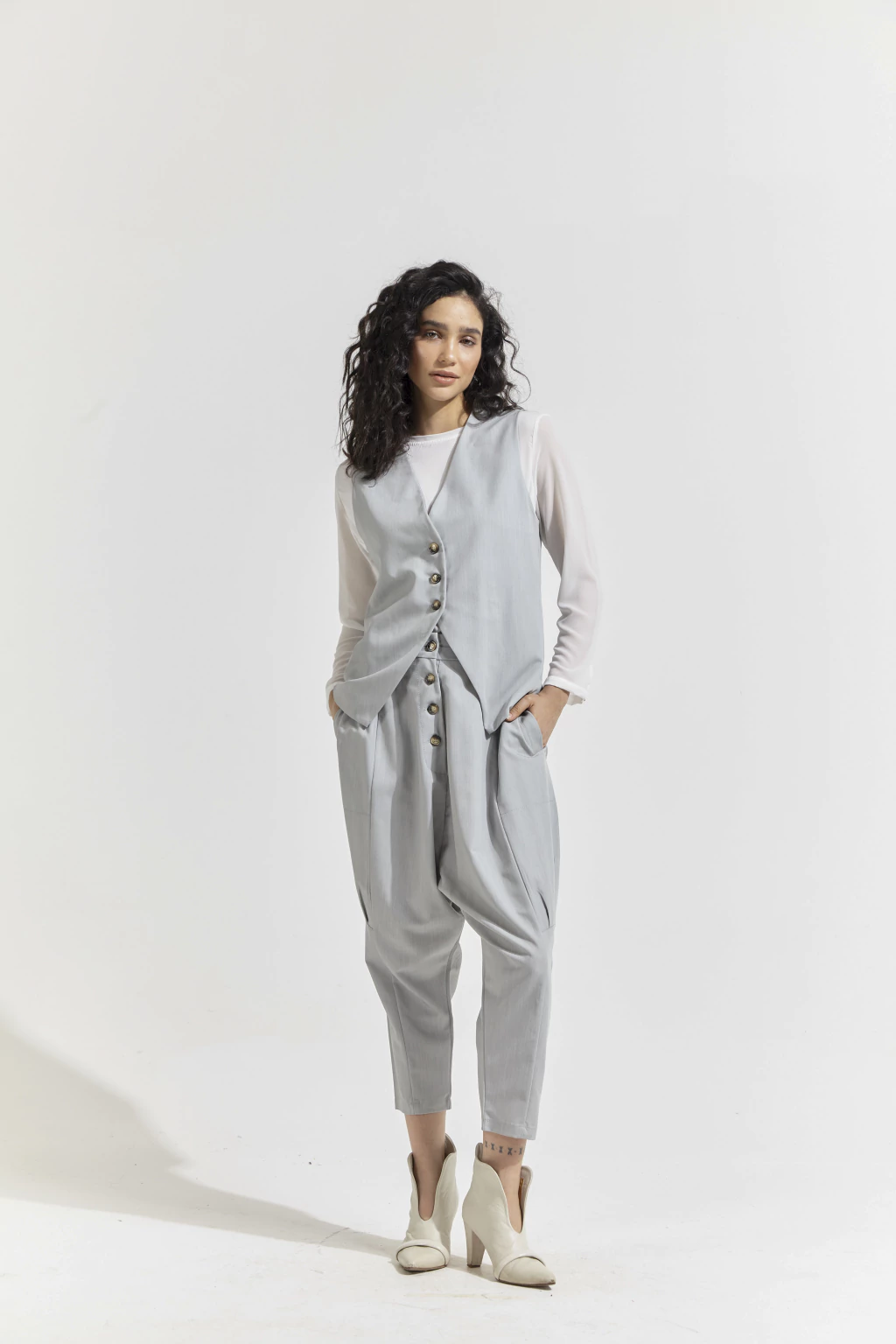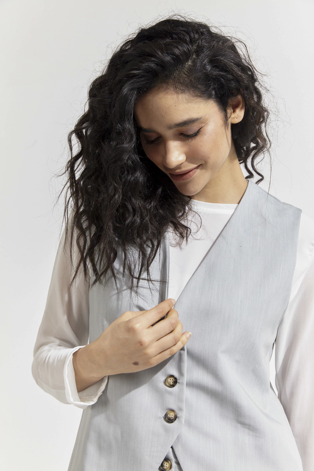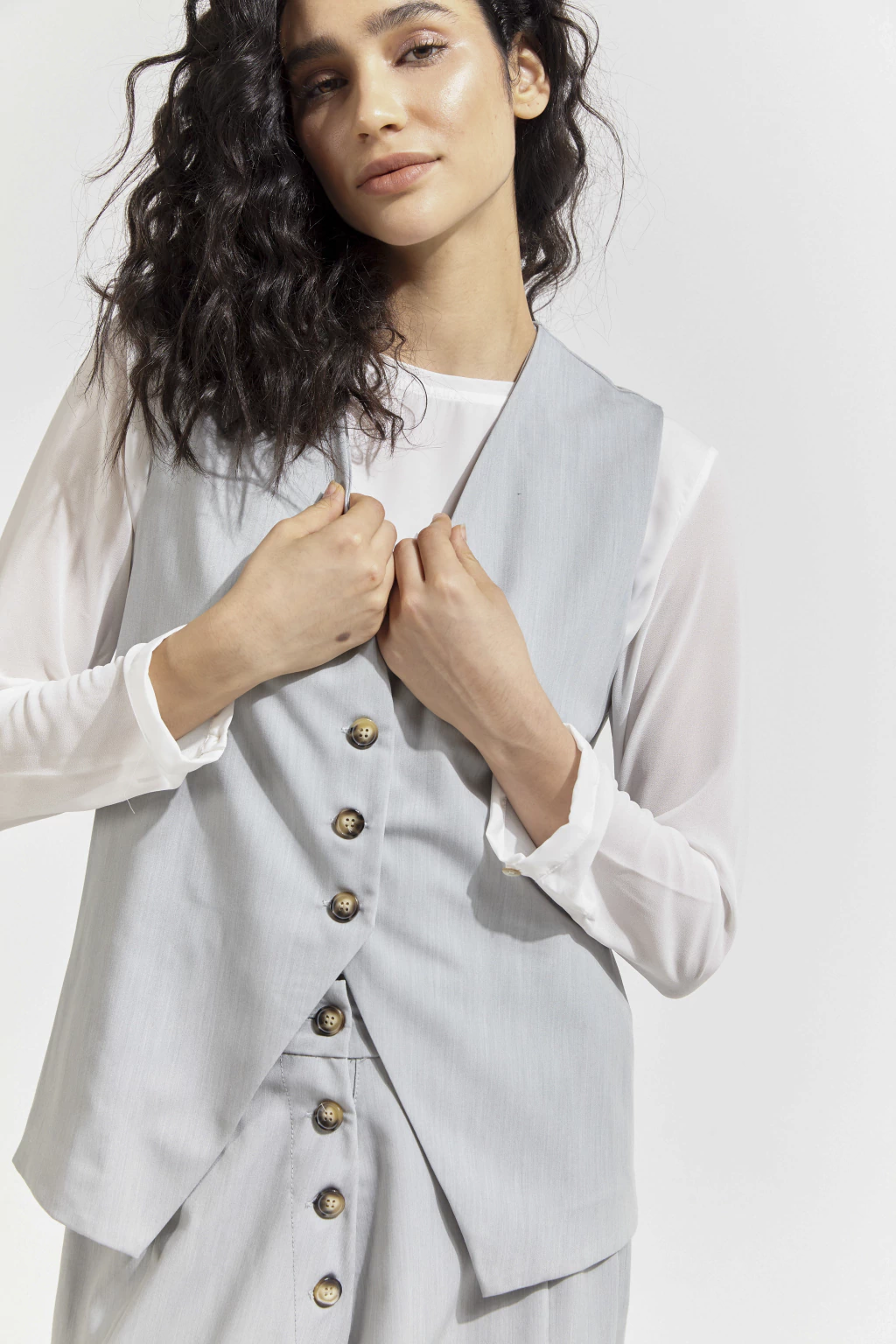 Chaleco sastrero confeccionado en rayón con botones de pasta a contratono.