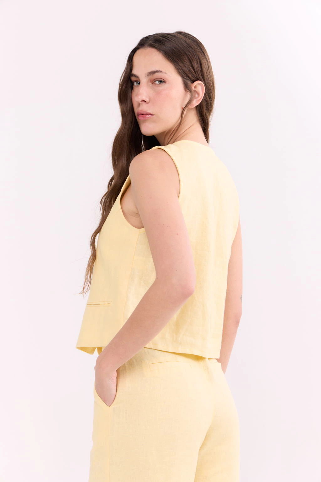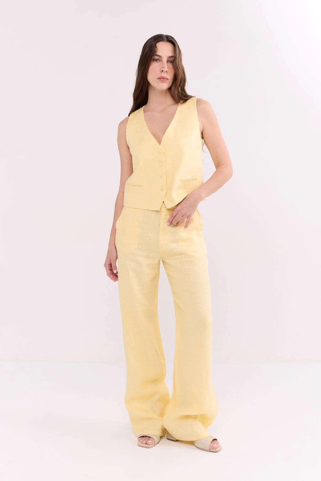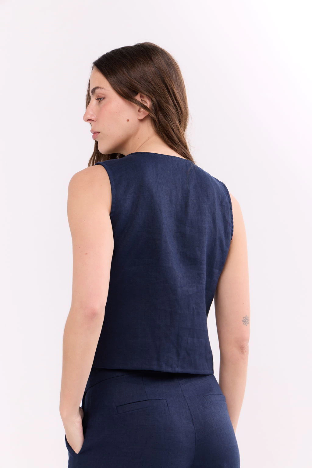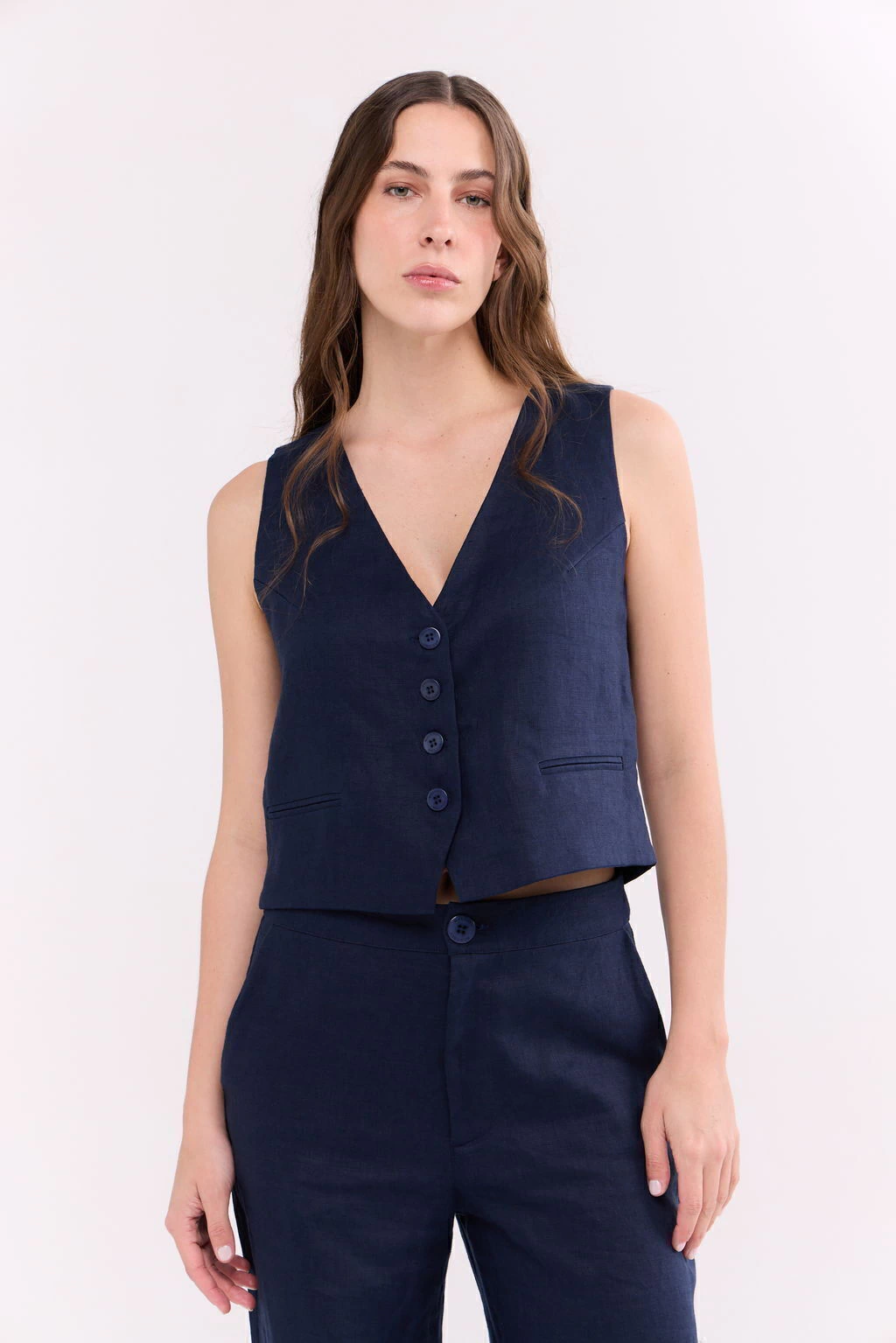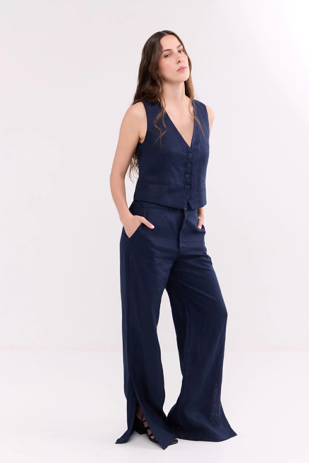 Descripción del textil: Lino sastrero, de acabado mate, liviano y fresco.