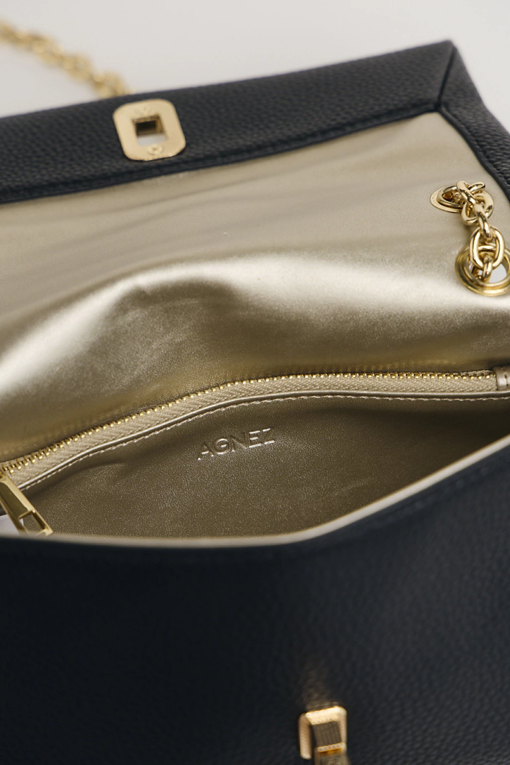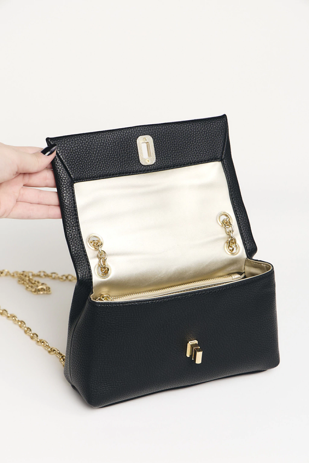 La Classy Bag es un minibolso compacto y sofisticado con el tamaño justo; te permite guardar fácilmente tu teléfono, tarjetas, llaves, labial y más. Contiene un bolsillo interno con cierre y presenta un sofisticado cierre de giro. Su correa de cadena permite llevarla al hombro o cruzada.
