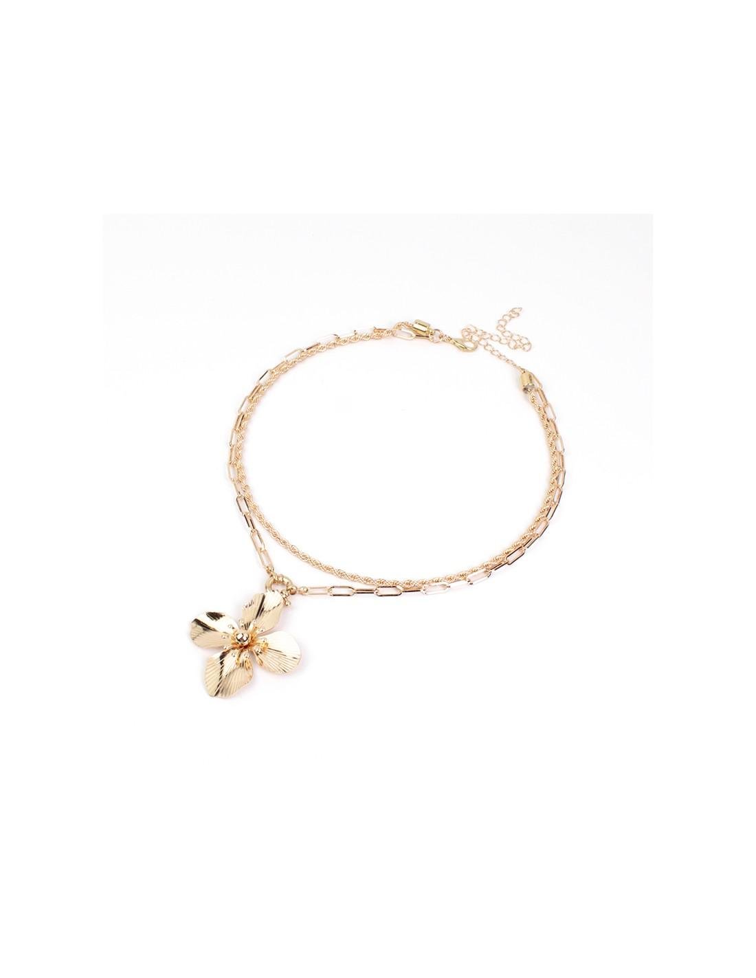 Collar corto doble cadena metal fantasía con dije de flor