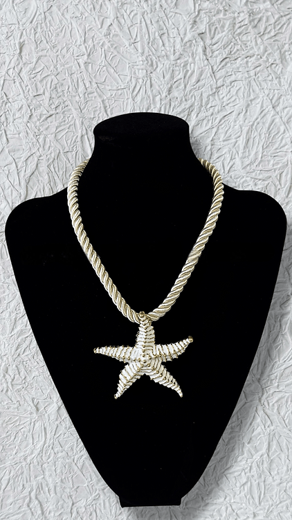 Collar de hilo torzado satinado con gran dije de estrella de mar con relieve, blanco y dorado