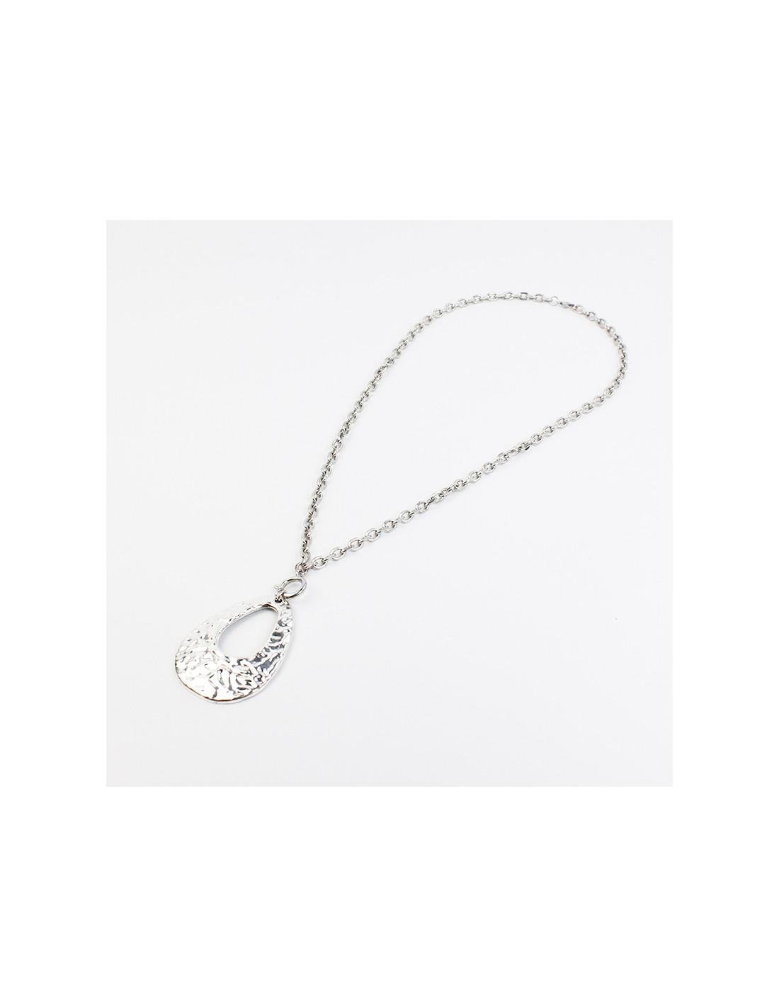 Collar cadena plateada metal fantasía con dije ovalado labrado