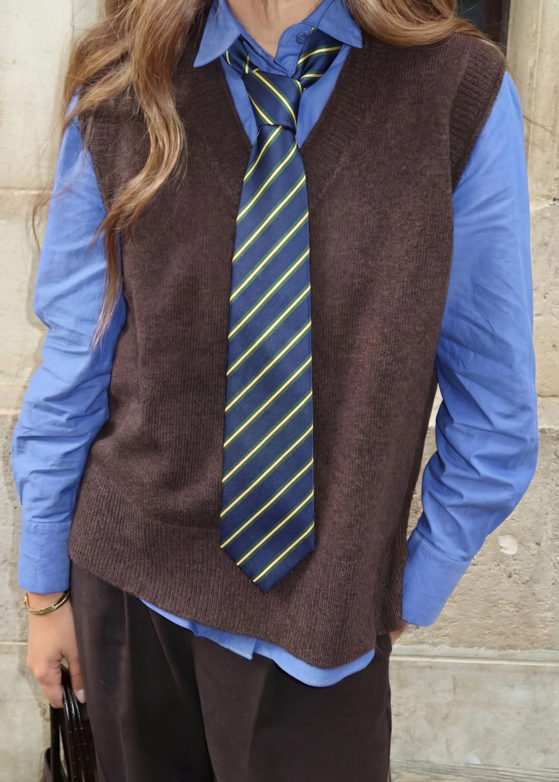 Corbata rayada combinada con lineas color verde y amarillo pastel