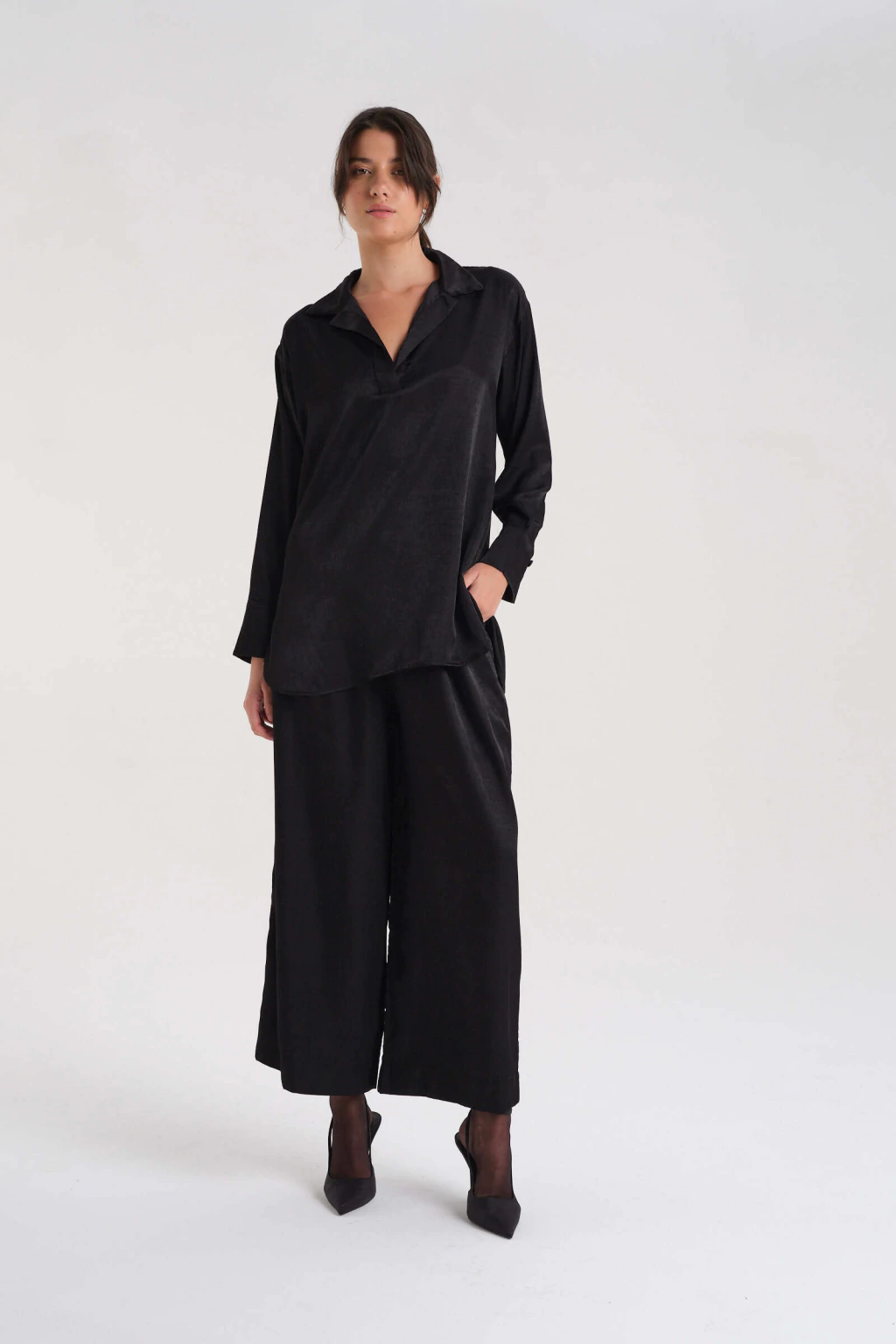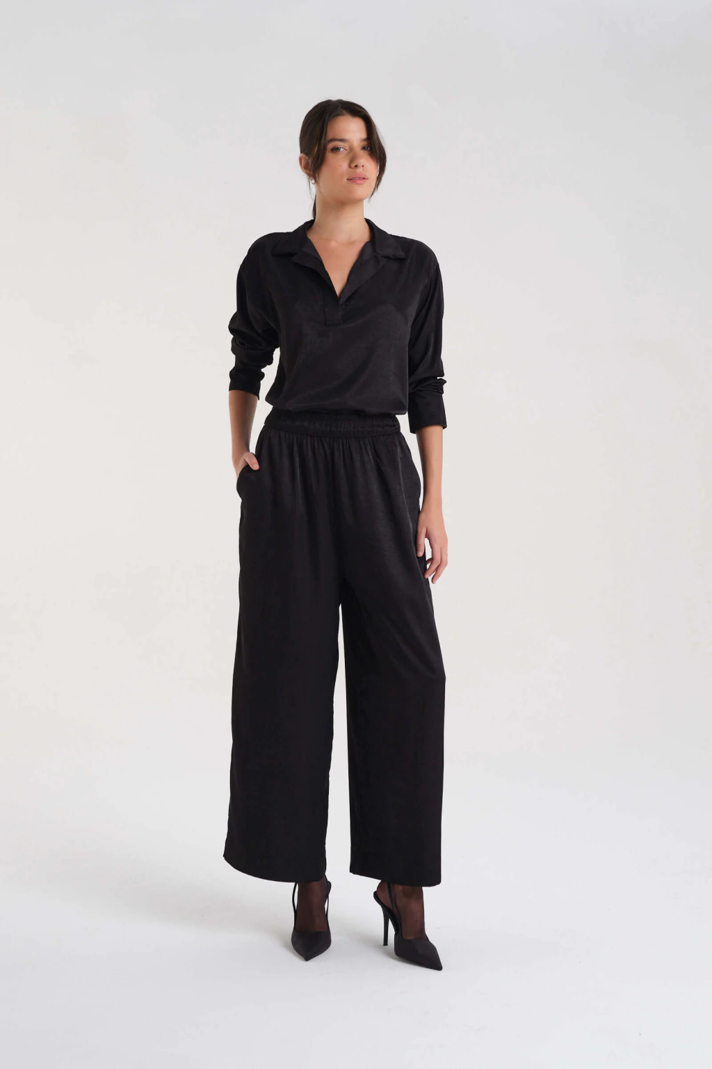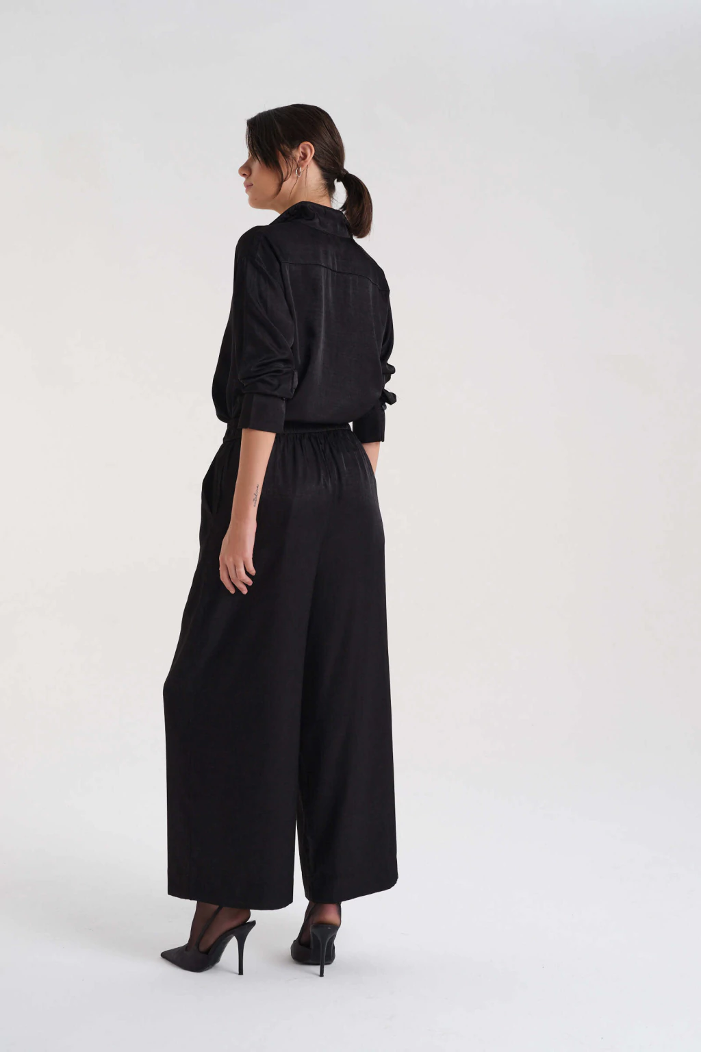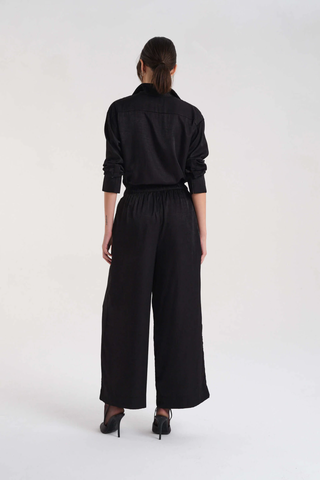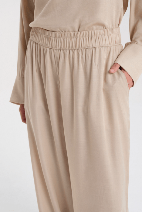 Pantalón de corte amplio con elástico en la cintura confeccionado en satén.