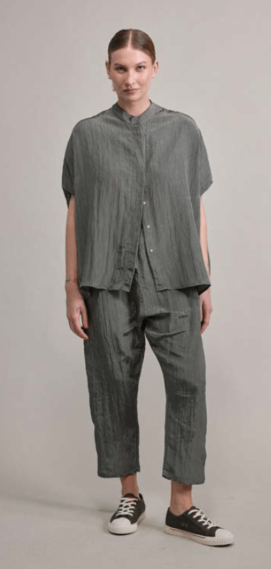 Pantalón de sedita arrugada con cintura elástica, bolsillos laterales y cordón ajustable