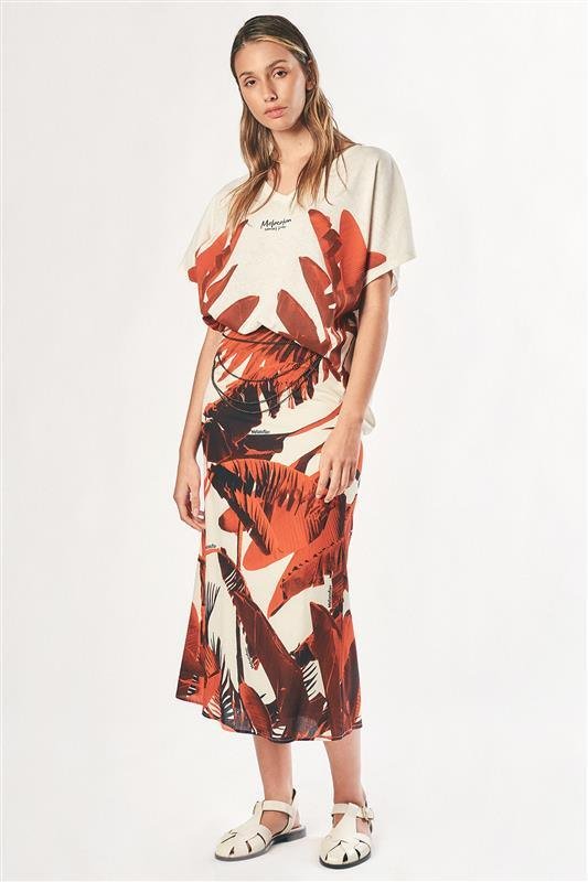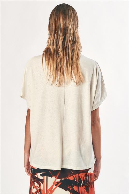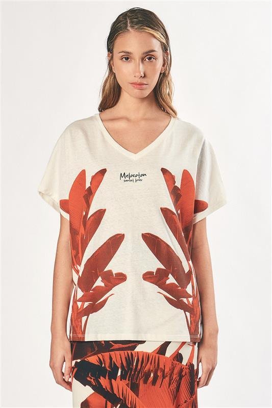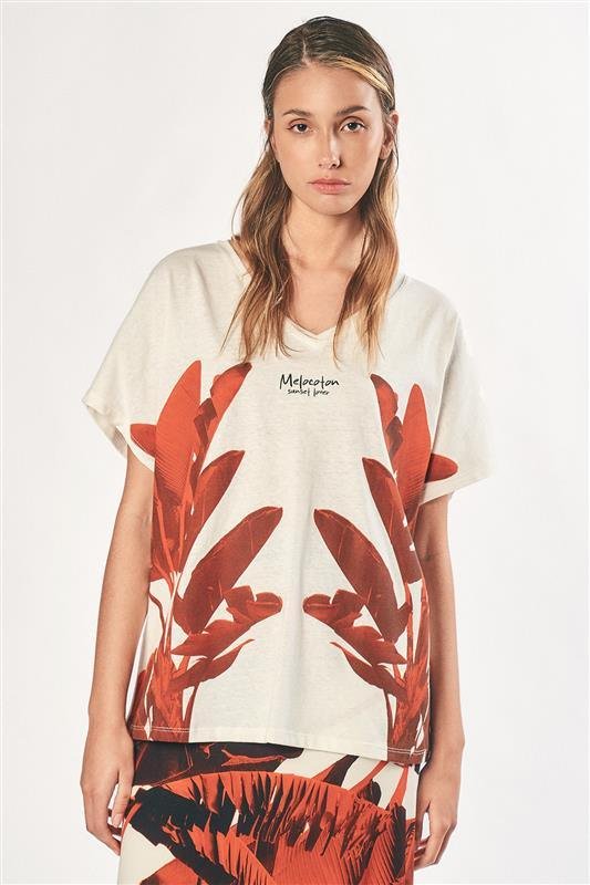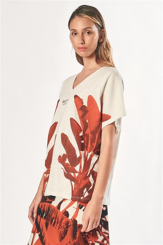 Remera manga corta de algodón escote en V con estampa propia de la marca