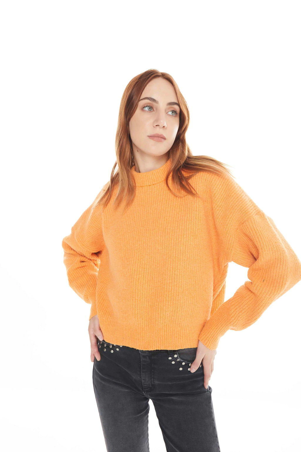 Sweater tejido escote redondo a la base del cuello con costura bajo hombro