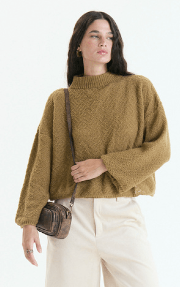 Sweater de mohair cuello puño media polera, largo hasta la primera cadera con manga amplia